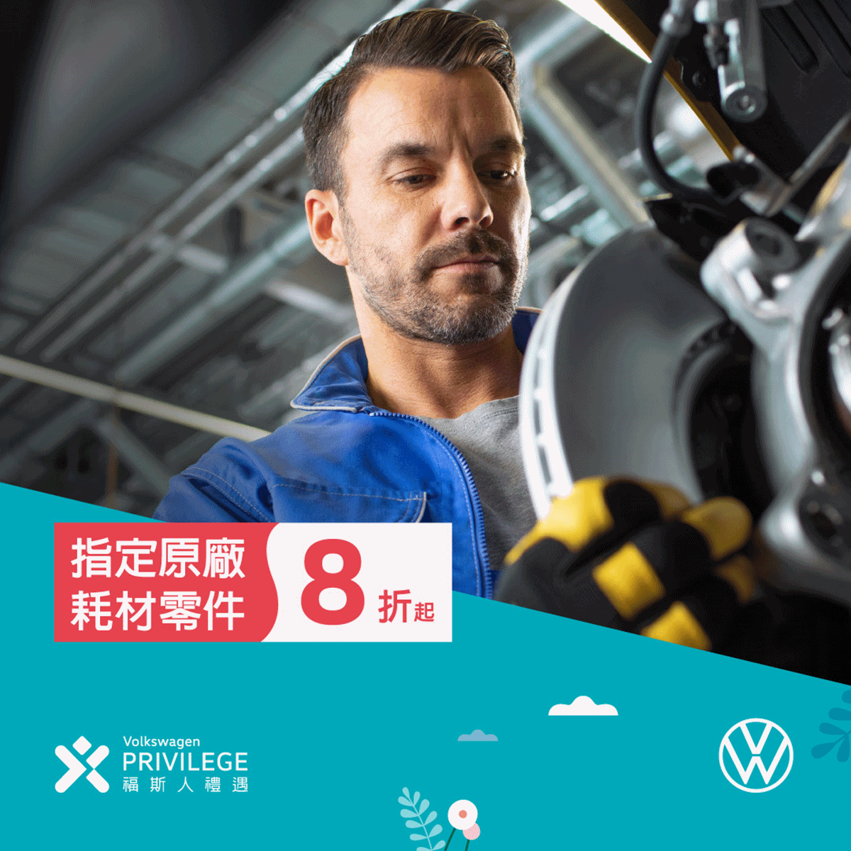 為回饋廣大的 Volkswagen 車主,凡活動期間內回廠的【福斯人禮遇計畫】會員車主,即可享有原廠保養耗材零件 8 折起的優惠折扣。