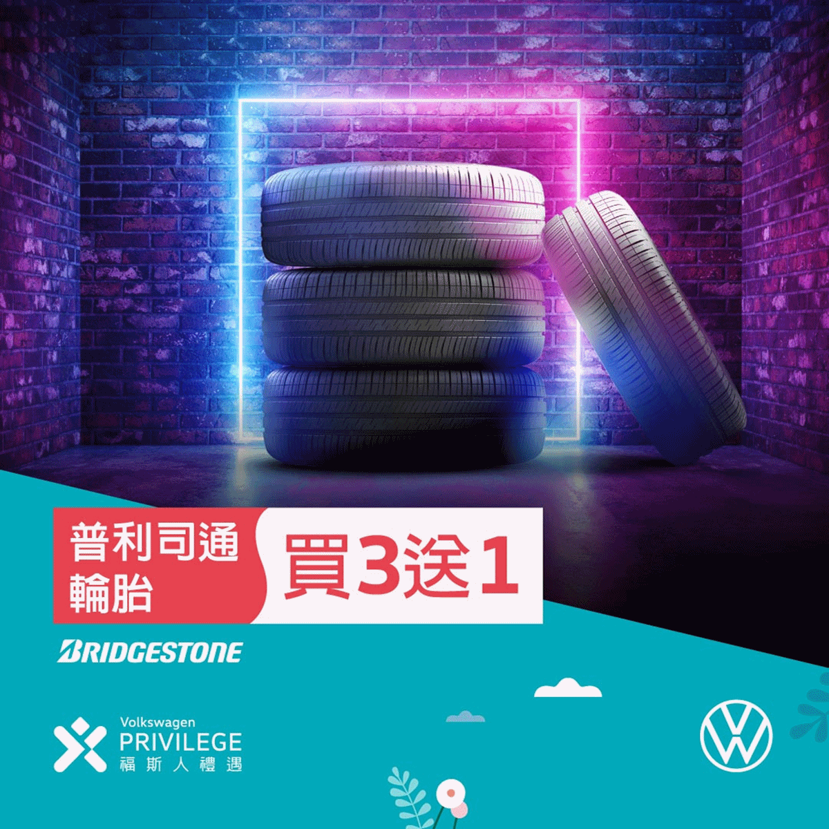 ✅ 普利司通輪胎 買 3 送 1 (一次自費購4條贈1一條)