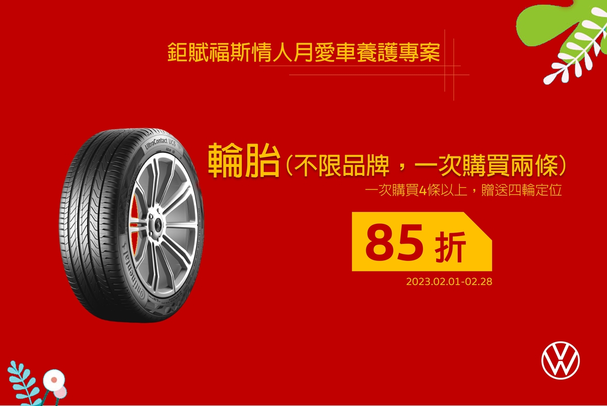 輪胎不限品牌一次購買2條85折,買四條贈四輪定位